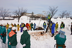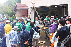市民23名の皆さんが熱心に男結びや合掌造り