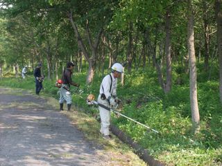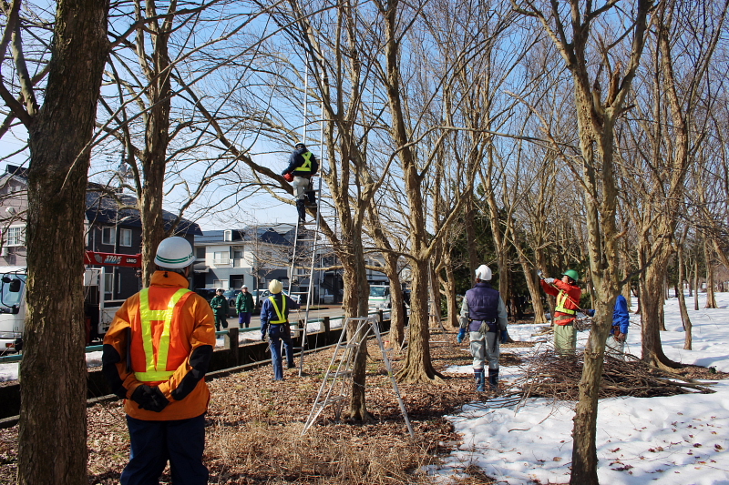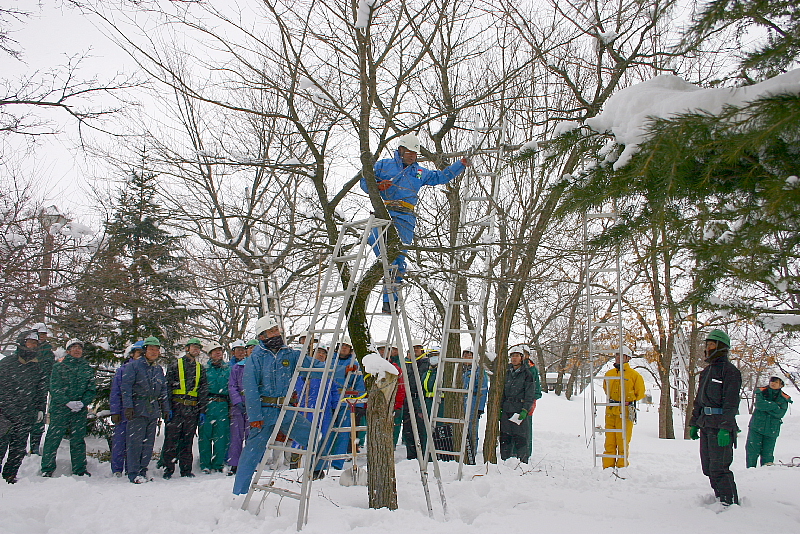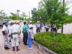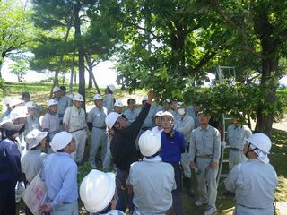 学校管理員50名が参加され、樹木の剪定と