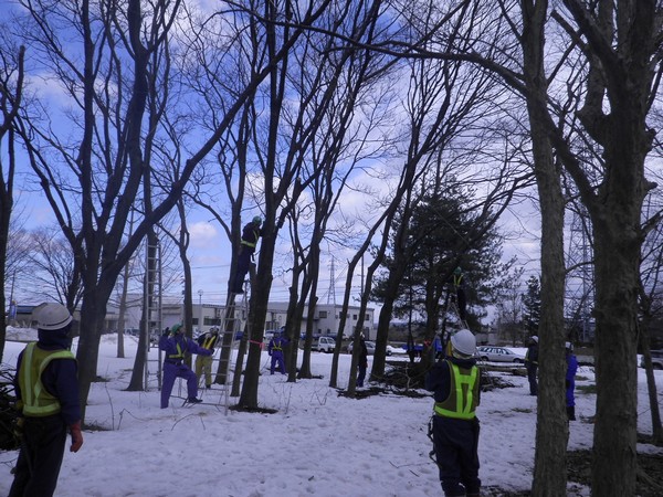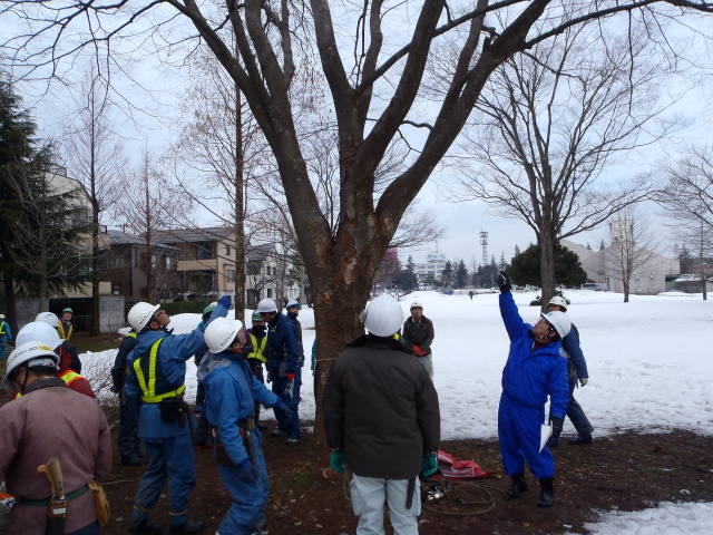 ■H.28年2月24日 防災訓練を実施しました。 災害時の迅速な対応と剪定伐採技術の向上を 目指します。s