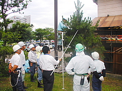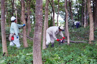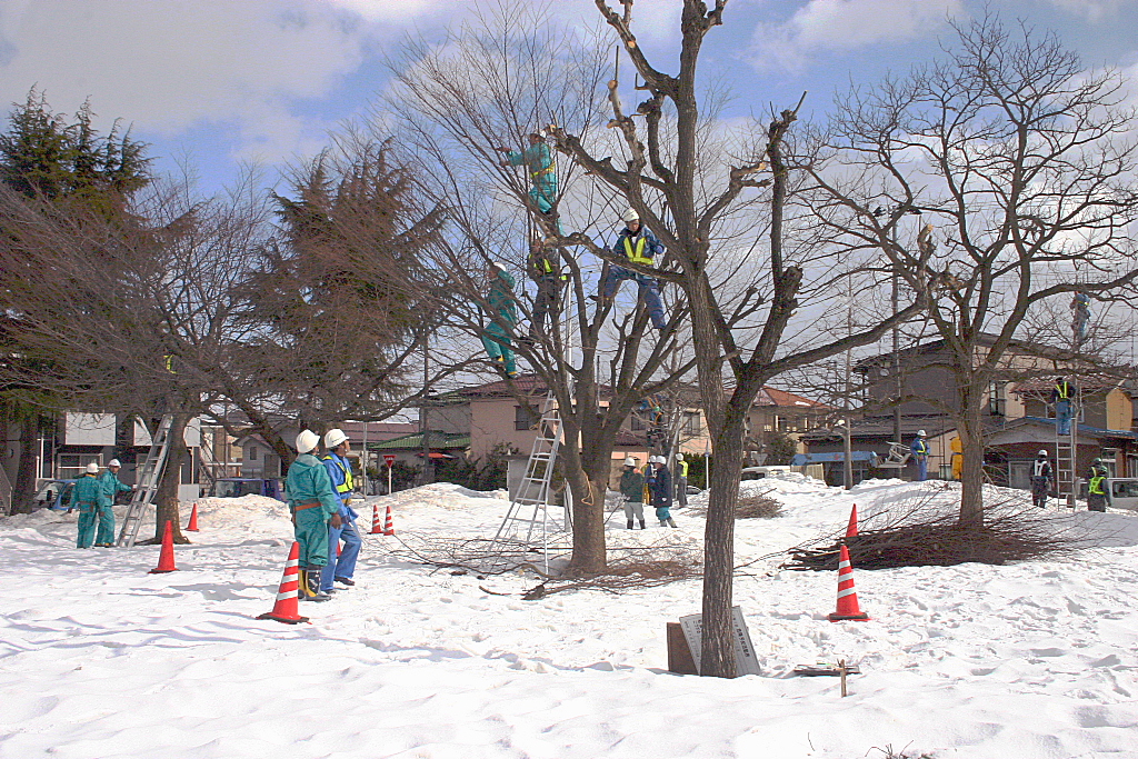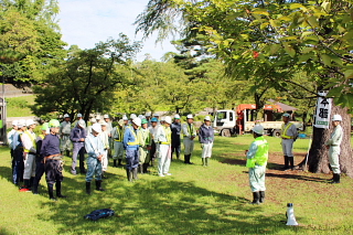 学校管理員51名が参加され、樹木の剪定と