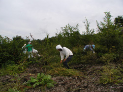 蒸暑い中、市民ボランティアさん達と