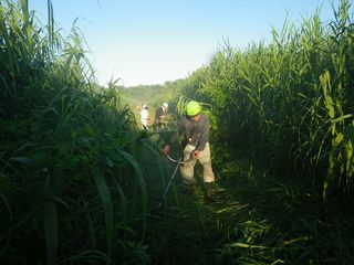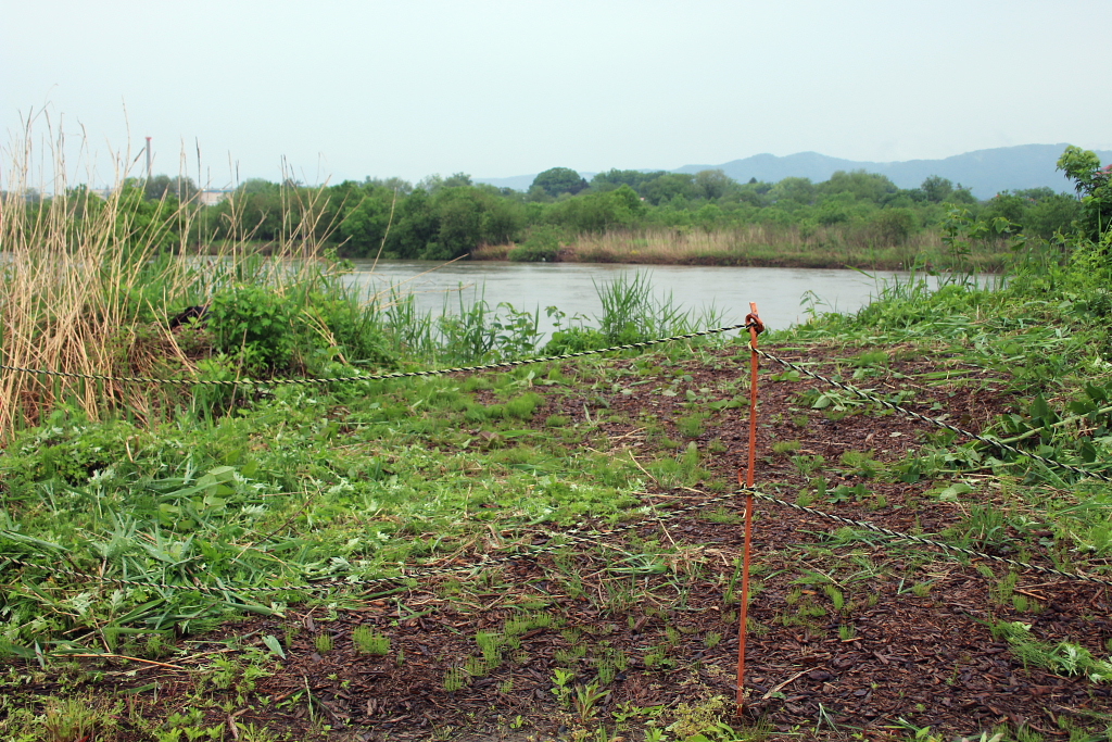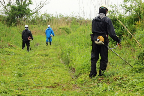 河川敷内の通路などを除草して、植物や野鳥の