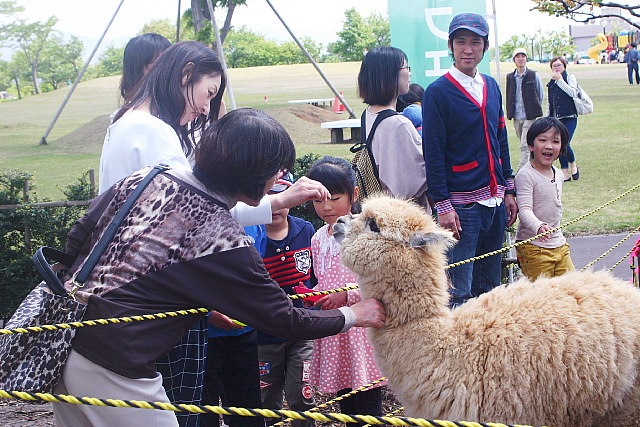 ■H.26年5月10日 長岡みどりフェスタ ひとなつこくて、目がとてもかわいいアルパカが 大人気。大勢の家族連れで賑わいました。 m