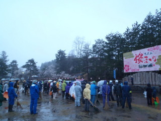 悠久山公園の桜まつりに先駆けて、小雨の振る中